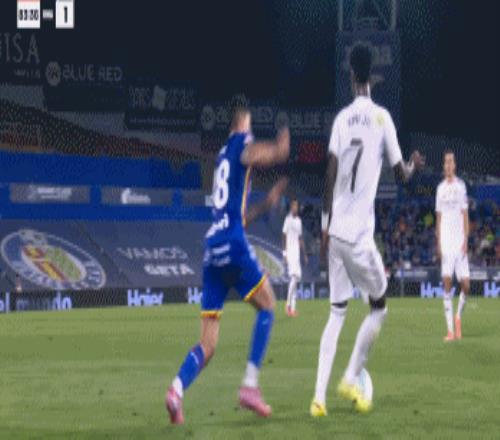 第76分钟,刚刚替补登场不到1分钟的尼约姆中场拦截时将维尼修斯凶狠撞倒,主裁处以极刑红牌将尼约姆罚下。人数占优的皇马随后攻势更猛,3分钟后,皇马全线压上,米利唐带球推到中圈弧顶前送出直塞,居莱尔禁区弧顶前接球转身往前调整再精妙直塞,姆巴佩禁区弧顶处接球转身抹入禁区获得半单刀良机,姆巴佩冷静大力推射,BOOM的一声皮球击中横梁下沿弹入网窝,皇马1:0终于是打破僵局。第83分钟,维尼修斯又让赫塔菲受到重击,桑克里斯背后踢倒维尼修斯,10分钟内吃到了个人的第2张黄牌,2黄变1红也被罚下场。9人作战的赫塔菲更加无力破门,最终皇马客场1:0准绝杀赫塔菲。