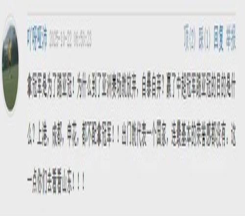 有球迷怒斥:“拿冠军是为了踢亚冠!为什么到了亚洲赛场就放弃,自暴自弃?赢了中超冠军踢亚冠的目的是什么?海港、成都、申花,都不配拿冠军!出门就代表一个国家,连最基本的荣誉感都没有。”